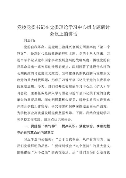 【七哥公文】2025年:党校党委书记在党委理论学习中心组专题研讨会议上的讲话+更多免费公文+VX:QiGeGongWen2024