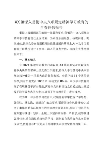 【七哥公文】2025年:XX镇深入贯彻中央八项规定精神学习教育的自查评估报告+更多免费公文+VX:QiGeGongWen2024
