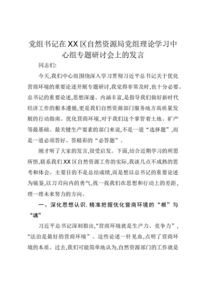 【七哥公文】2025年:党组书记在XX区自然资源局党组理论学习中心组专题研讨会上的发言+更多免费公文+VX:QiGeGongWen2024