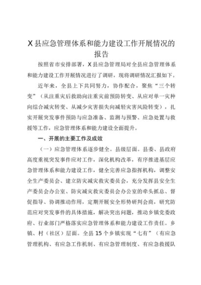 / 【七哥公文】2025年:X县应急管理体系和能力建设工作开展情况的报告+更多免费公文+VX:QiGeGongWen2024