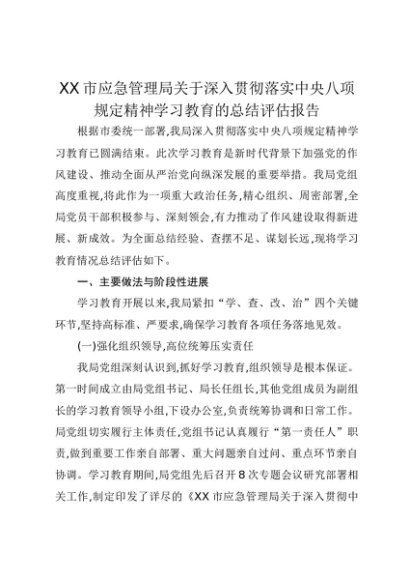 【七哥公文】2025年:XX市应急管理局关于深入贯彻落实中央八项规定精神学习教育的总结评估报告+更多免费公文+VX:QiGeGongWen2024