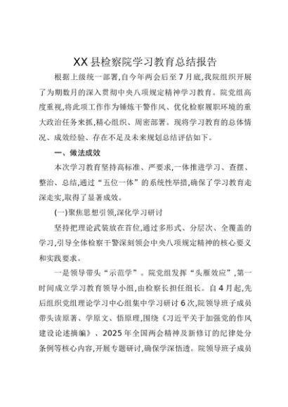 【七哥公文】2025年:XX县检察院贯彻中央八项规定精神学习教育总结报告+更多免费公文+VX:QiGeGongWen2024