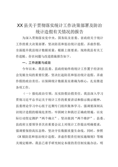 【七哥公文】2025年:XX县关于贯彻落实统计工作决策部署及防治统计造假有关情况的报告+更多免费公文+VX:QiGeGongWen2024