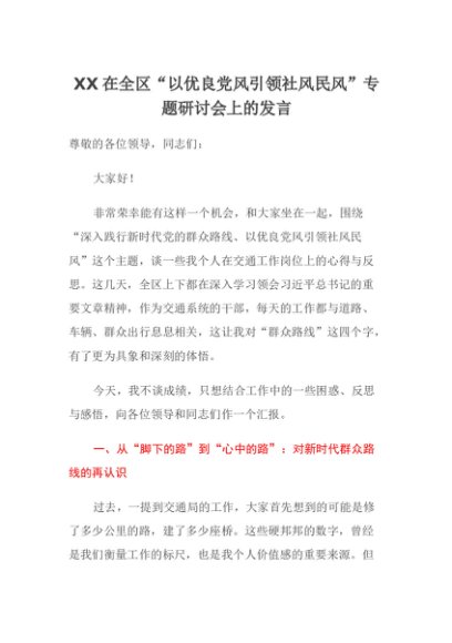 【七哥公文】2025年:XX在全区“以优良党风引领社风民风”专题研讨会上的发言+更多免费公文+VX:QiGeGongWen2024