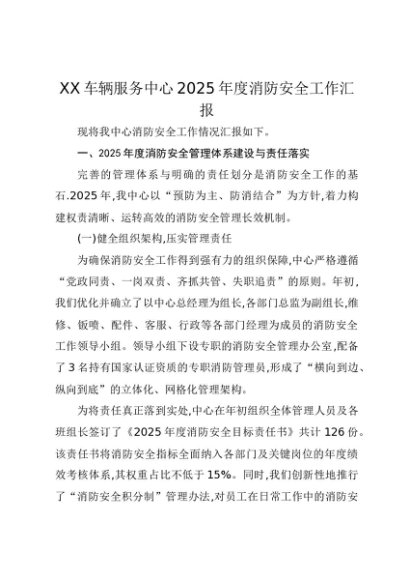 / 【七哥公文】2025年:XX车辆服务中心2025年度消防安全工作汇报+更多免费公文+VX:QiGeGongWen2024