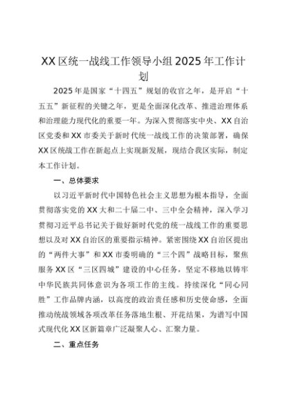 / 【七哥公文】2025年:XX区统一战线工作领导小组2025年工作计划+更多免费公文+VX:QiGeGongWen2024