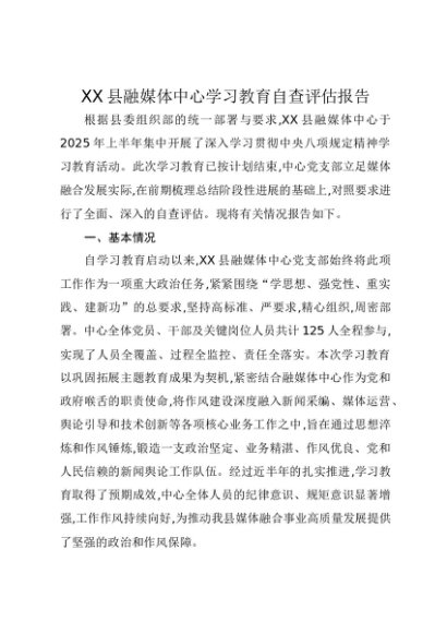 【七哥公文】2025年:XX县融媒体中心贯彻中央八项规定精神学习教育自查评估报告+更多免费公文+VX:QiGeGongWen2024