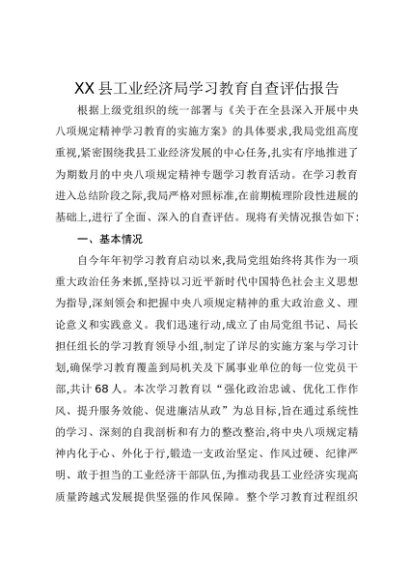 【七哥公文】2025年:XX县工业经济局贯彻中央八项规定精神学习教育自查评估报告+更多免费公文+VX:QiGeGongWen2024