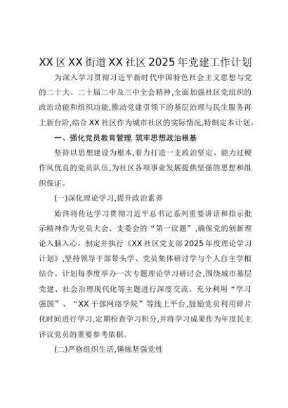 / 【七哥公文】2025年:XX区XX街道XX社区2025年党建工作计划+更多免费公文+VX:QiGeGongWen2024