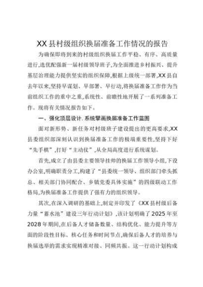 / 【七哥公文】2025年:XX县村级组织换届准备工作情况的报告+更多免费公文+VX:QiGeGongWen2024