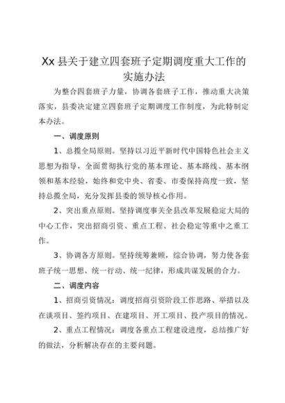【七哥公文】2025年:Xx县关于建立四套班子定期调度重大工作的实施办法+更多免费公文+VX:QiGeGongWen2024