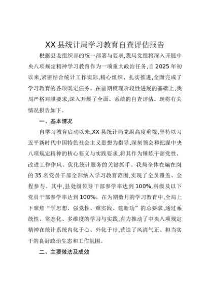 【七哥公文】2025年:XX县统计局中央八项规定精神学习教育自查评估报告+更多免费公文+VX:QiGeGongWen2024