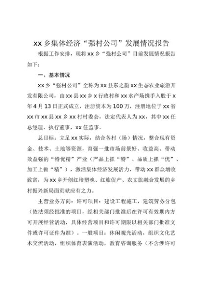 / 【七哥公文】2025年:xx乡集体经济“强村公司”发展情况报告+更多免费公文+VX:QiGeGongWen2024