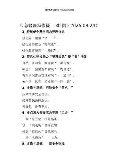 【七哥公文】2025年:【七哥公文】应急管理写作提纲30例(2025.08.24)+更多免费公文+VX:QiGeGongWen2024+更多免费公文+VX:QiGeGongWen2024