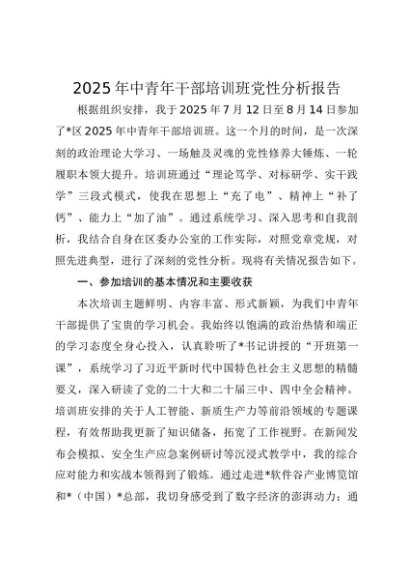 / 【七哥公文】2025年:2025年中青年干部培训班党性分析报告+更多免费公文+VX:QiGeGongWen2024