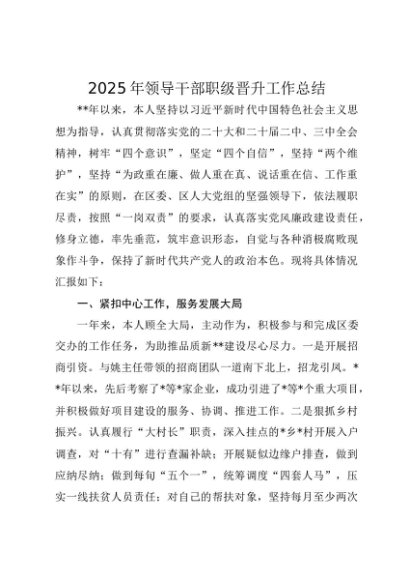 / 【七哥公文】2025年:2025年领导干部职级晋升工作总结+更多免费公文+VX:QiGeGongWen2024