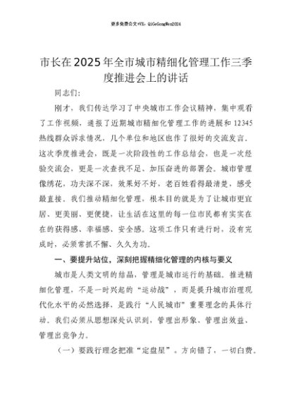 【七哥公文】2025年:【七哥公文】市长在2025年全市城市精细化管理工作三季度推进会上的讲话+更多免费公文+VX:QiGeGongWen2024+更多免费公文+VX:QiGeGongWen2024