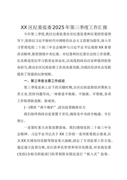 / 【七哥公文】2025年:XX区纪委监委2025年第三季度工作汇报+更多免费公文+VX:QiGeGongWen2024