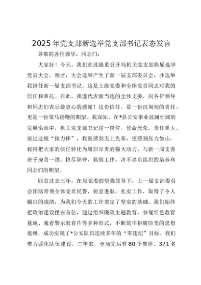 / 【七哥公文】2025年:2025年党支部新选举党支部书记表态发言+更多免费公文+VX:QiGeGongWen2024