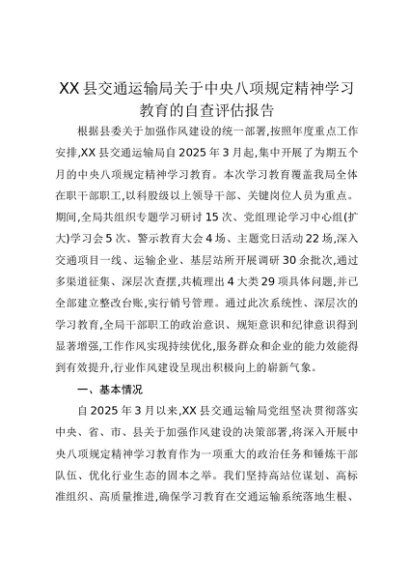 【七哥公文】2025年:XX县交通运输局关于中央八项规定精神学习教育的自查评估报告+更多免费公文+VX:QiGeGongWen2024