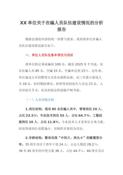 / 【七哥公文】2025年:XX单位关于在编人员队伍建设情况的分析报告+更多免费公文+VX:QiGeGongWen2024