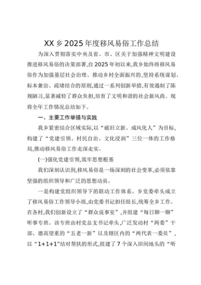 / 【七哥公文】2025年:XX乡2025年度移风易俗工作总结+更多免费公文+VX:QiGeGongWen2024