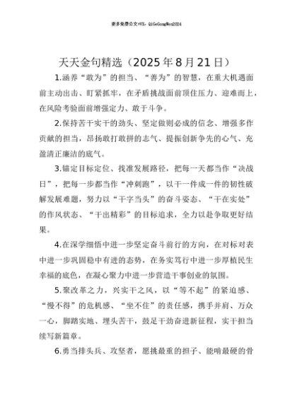 【七哥公文】2025年:【七哥公文】天天金句精选(2025年8月21日)+更多免费公文+VX:QiGeGongWen2024+更多免费公文+VX:QiGeGongWen2024