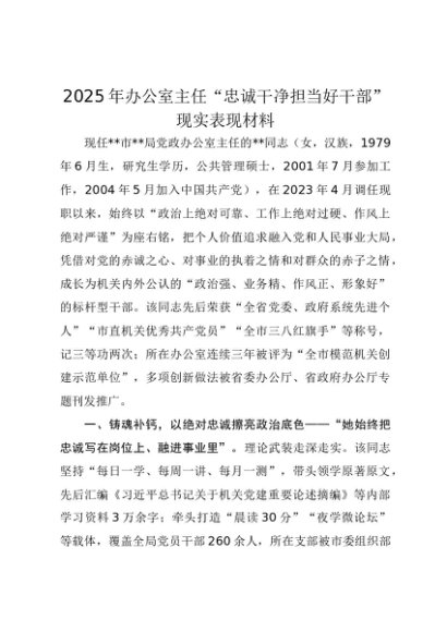 【七哥公文】2025年:2025年办公室主任“忠诚干净担当好干部”现实表现材料+更多免费公文+VX:QiGeGongWen2024