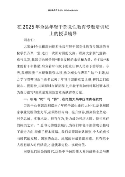 【七哥公文】2025年:【七哥公文】在2025年全县年轻干部党性教育专题培训班上的授课辅导+更多免费公文+VX:QiGeGongWen2024+更多免费公文+VX:QiGeGongWen2024