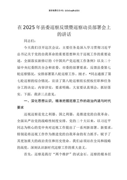 【七哥公文】2025年:【七哥公文】在2025年县委巡察反馈暨巡察动员部署会上的讲话+更多免费公文+VX:QiGeGongWen2024+更多免费公文+VX:QiGeGongWen2024