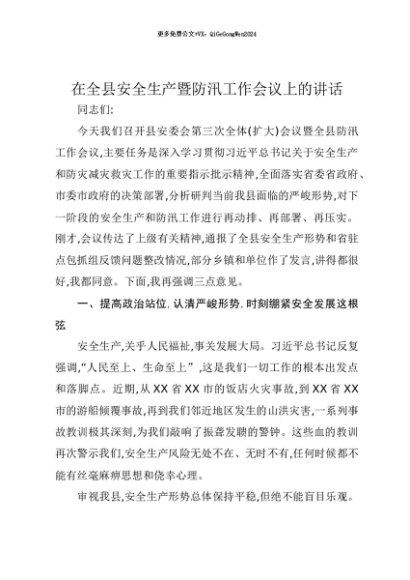 【七哥公文】2025年:【七哥公文】在全县安全生产暨防汛工作会议上的讲话+更多免费公文+VX:QiGeGongWen2024+更多免费公文+VX:QiGeGongWen2024