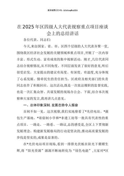 【七哥公文】2025年:【七哥公文】在2025年区四级人大代表视察重点项目座谈会上的总结讲话+更多免费公文+VX:QiGeGongWen2024+更多免费公文+VX:QiGeGongWen2024