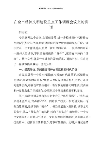 【七哥公文】2025年:【七哥公文】在全市精神文明建设重点工作调度会议上的讲话+更多免费公文+VX:QiGeGongWen2024+更多免费公文+VX:QiGeGongWen2024