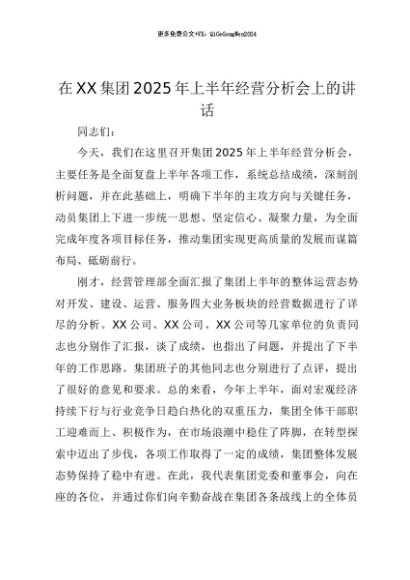 【七哥公文】2025年:【七哥公文】在XX集团2025年上半年经营分析会上的讲话+更多免费公文+VX:QiGeGongWen2024+更多免费公文+VX:QiGeGongWen2024
