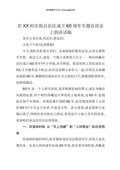 【七哥公文】2025年:【七哥公文】在XX村庆祝自治区成立60周年专题宣讲会上的讲话稿+更多免费公文+VX:QiGeGongWen2024+更多免费公文+VX:QiGeGongWen2024