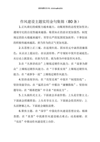 【七哥公文】2025年:【七哥公文】作风建设主题实用金句集锦(80条)+更多免费公文+VX:QiGeGongWen2024+更多免费公文+VX:QiGeGongWen2024