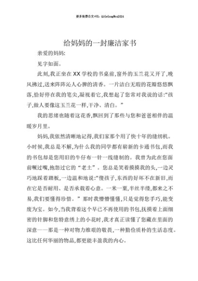 【七哥公文】2025年:【七哥公文】给妈妈的一封廉洁家书+更多免费公文+VX:QiGeGongWen2024+更多免费公文+VX:QiGeGongWen2024