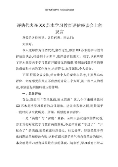 【七哥公文】2025年:【七哥公文】评估代表在XX苏木贯彻中央八项规定精神学习教育评估座谈会上的发言+更多免费公文+VX:QiGeGongWen2024+更多免费公文+VX:QiGeGongWen2024