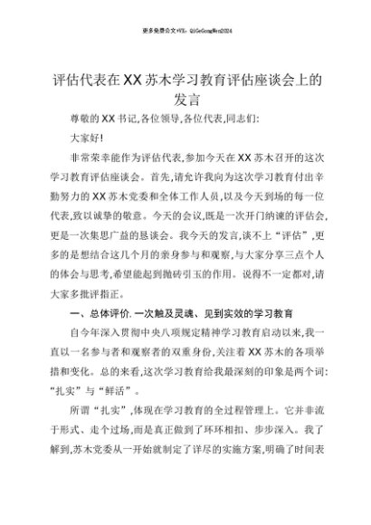 【七哥公文】2025年:【七哥公文】评估代表在XX苏木贯彻中央八项规定精神学习教育评估座谈会上的发言1+更多免费公文+VX:QiGeGongWen2024+更多免费公文+VX:QiGeGongWen2024