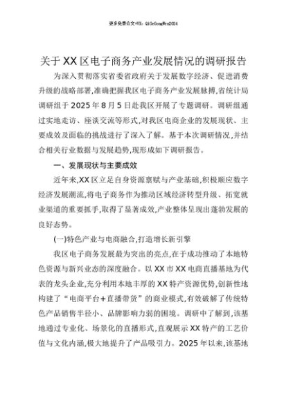 【七哥公文】2025年:【七哥公文】关于XX区电子商务产业发展情况的调研报告+更多免费公文+VX:QiGeGongWen2024+更多免费公文+VX:QiGeGongWen2024
