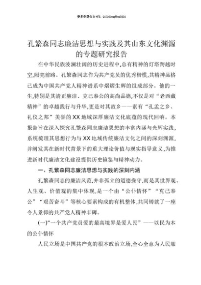 【七哥公文】2025年:【七哥公文】孔繁森同志廉洁思想与实践及其山东文化渊源的专题研究报告+更多免费公文+VX:QiGeGongWen2024+更多免费公文+VX:QiGeGongWen2024