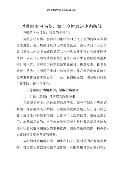 【七哥公文】2025年:【七哥公文】村干部2025年云南省曲靖市统计造假、政治生态恶化典型案例交流研讨发言+更多免费公文+VX:QiGeGongWen2024+更多免费公文+VX:QiGeGongWen2024