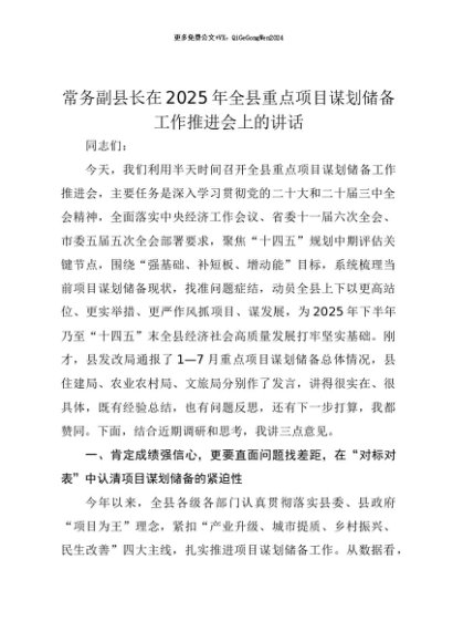 【七哥公文】2025年:【七哥公文】常务副县长在2025年全县重点项目谋划储备工作推进会上的讲话+更多免费公文+VX:QiGeGongWen2024+更多免费公文+VX:QiGeGongWen2024