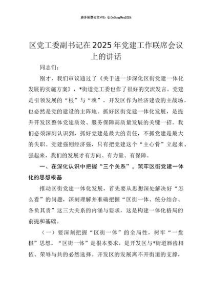 【七哥公文】2025年:【七哥公文】区党工委副书记在2025年党建工作联席会议上的讲话+更多免费公文+VX:QiGeGongWen2024+更多免费公文+VX:QiGeGongWen2024