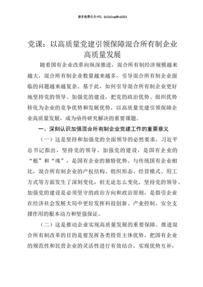 【七哥公文】2025年:【七哥公文】党课讲稿:以高质量党建引领保障混合所有制企业高质量发展+更多免费公文+VX:QiGeGongWen2024+更多免费公文+VX:QiGeGongWen2024