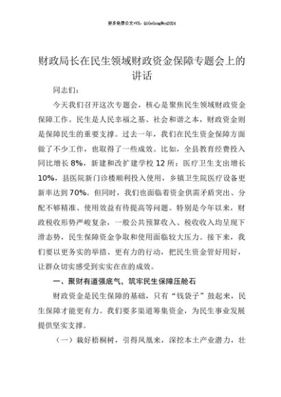 【七哥公文】2025年:【七哥公文】财政局长在民生领域财政资金保障专题会上的讲话+更多免费公文+VX:QiGeGongWen2024+更多免费公文+VX:QiGeGongWen2024