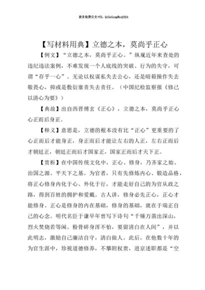 【七哥公文】2025年:【七哥公文】【写材料用典】立德之本,莫尚乎正心+更多免费公文+VX:QiGeGongWen2024+更多免费公文+VX:QiGeGongWen2024
