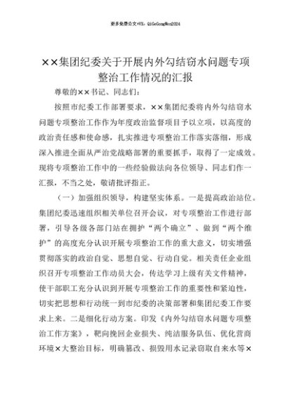 【七哥公文】2025年:【七哥公文】××集团纪委关于开展内外勾结窃水问题专项整治工作情况的汇报+更多免费公文+VX:QiGeGongWen2024+更多免费公文+VX:QiGeGongWen2024