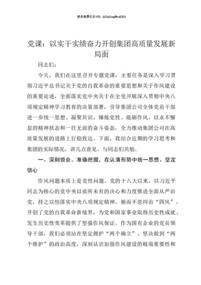 【七哥公文】2025年:【七哥公文】党课讲稿:以实干实绩奋力开创集团高质量发展新局面+更多免费公文+VX:QiGeGongWen2024+更多免费公文+VX:QiGeGongWen2024