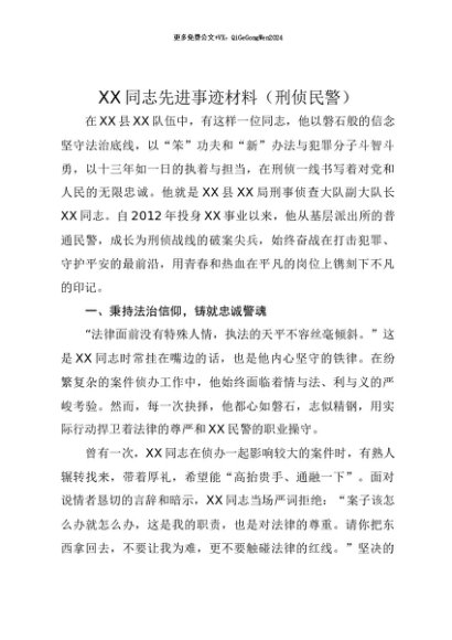 【七哥公文】2025年:【七哥公文】XX同志先进事迹材料(刑侦民警)+更多免费公文+VX:QiGeGongWen2024+更多免费公文+VX:QiGeGongWen2024